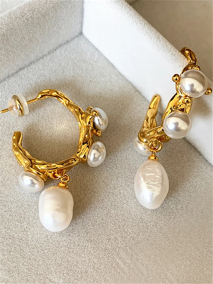 Elevate your look with our Serene Pearl Pendant earrings. These earrings feature a unique and elegant design that will add a touch of sophistication to any outfit. Made with high-quality materials, they are perfect for any occasion. Enhance your style with these stunning earrings today.